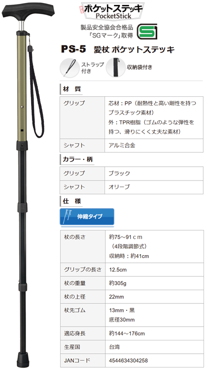 | 長さ: | 約75〜91cm(適応身長:約144〜176cm) |